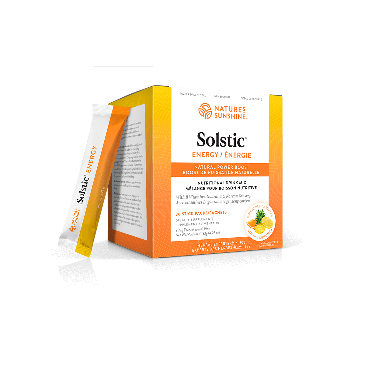 Метаболічна енергія, що виробляється в організмі людини, є ключовим чинником нашого здоров’я, фізичного та психоемоційного стану. Для того, щоби підвищити вироблення енергії, часто застосовують різноманітні стимулятори на основі кофеїну (кава, міцний чай, енергетики). Компанія NSP розробила дуже ефективний та збалансований енергетичний напій, основу якого складає гуарана. Він діє триваліший час і не надає надмірної збуджувальної дії. Ефективність дії напою забезпечують також екстракти кореня женьшеню, зеленого чаю, шкірки червоного винограду, комплекс вітамінів групи В. Завдяки тонізувальній дії Солстік Енерджи підвищує фізичну працездатність, поліпшує роботу серця, позитивно впливає на центральну нервову систему, поліпшує пам’ять, гостроту мислення, увагу, швидкість реакції, сприяє поліпшенню емоційного стану. Солстік Енерджи можна рекомендувати для боротьби з надмірною вагою, він притуплює почуття голоду, збільшує витривалість. Він підходить як особам молодого віку, так і людям похилого віку, у яких відзначається вікове зниження вироблення енергії, а також водіям та людям, які працюють в нічний час.
